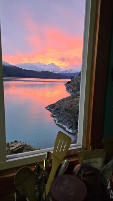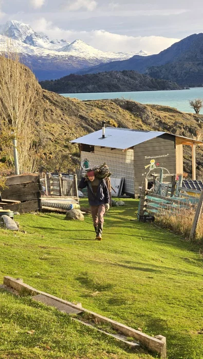В этот раз добирались на субсидированной лодке, на которой де-юре запрещено возить туристов, однако мы уже примелькались + репутация начала работать. Кстати о ней. История произошла в январе 2024 года, мы с Яном и Мейлен были в двухмесячной экспедиции по озеру. В это время правительство Чили в рамках соцпрограммы раздало переселенцам из зоны “extremo” спутниковые ТВ тарелки и безлимит на 6 основновных каналов. Тарелки то привезли, да не установили. В инструкции были лишь настройки под города на расстоянии от озера почти в 1000 км. Не проблема, у нас Ян - инженер. Рассчитал угол и азимут поворота тарелки, а мы с Машей были на принеси-подай, да прикрути. Успешно установив и настроив оборудование трем разным поселенцам, на 50-й день похода мы приплыли к четвертому.