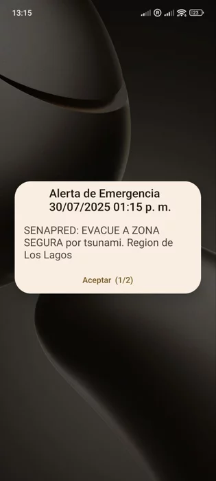 Свайпом не отключить, необходимо 3 клика. Предупреждение ещё дважды приходило в течении следующих 5-10 минут. Волна пришла через 15 минут высотой 2-3 метра. Никто не пострадал. В следующие дни на Камчатке были афтершоки, а у нас - новые угрозы цунами с пронзительными уведомлениями... Никакой беззвучный режим не помогал, необходимо 3 последовательных клика или выключение телефона. После СМСок от МЧС России в 2013-2021 гг, которые нередко приходили постфактум, я был под приятным впечатлением от способа уведомления о ЧС в Чили.