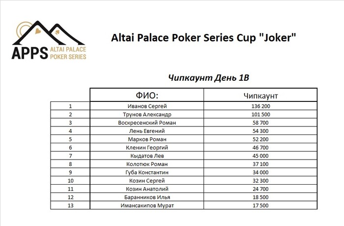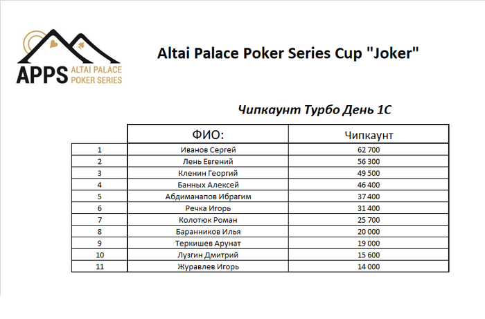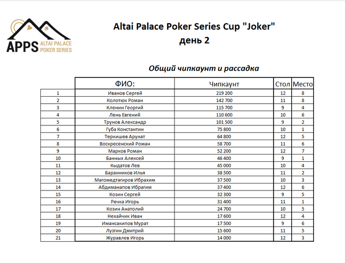 На начало финального дня чип лидером являлся Иванов Сергей - 219 200.