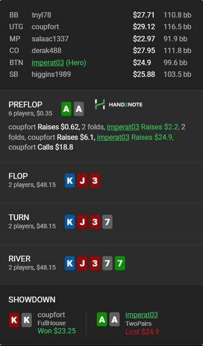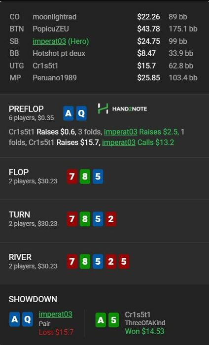 Итак, прошло 4 месяца с моего последнего поста, расскажу, что вообще происходило и почему я не отписывался тут. В октябре я всё же твёрдо решил окончательно перейти в кеш, при этом ничего в нём не понимая. Катал достаточно успешно НЛ50 на GG 3бб/100, но вскоре принял то, что бодаться с рейком там я не могу, да и игра без стат в итоге превратилась для меня, в какой-то момент, в шоу “Интуиция”. Как и планировалось я взял курс из 5 занятий у тренера, хочу сказать огромное спасибо Жене Celtic’у, за то, что открыл глаза на многие нюансы игры. Последнее занятие мы провели в конце января, а за всё время я получил тонну полезной инфы, НО к сожалению для себя никаким успехами я похвастать не могу((. В ноябре по совету Жени я пошел в адекватный рум, коим стали старзы и наивно, даже с долей пренебрежения к тамошним регам (ну я же с тренером занимаюсь и вообще дохера чего умею) начал сходу катать родной НЛ50, но у регов старзов было своё видение на этот счёт и меня быстро спустили с небес на землю, а точнее под неё на 30БИ за 70000 рук. После чего было принято решение поумерить своё эго и спуститься на НЛ25, где дела стали попроще, но тем не менее в гору не идут, таким образом я уже 2 месяца катаю НЛ25 в ноль.