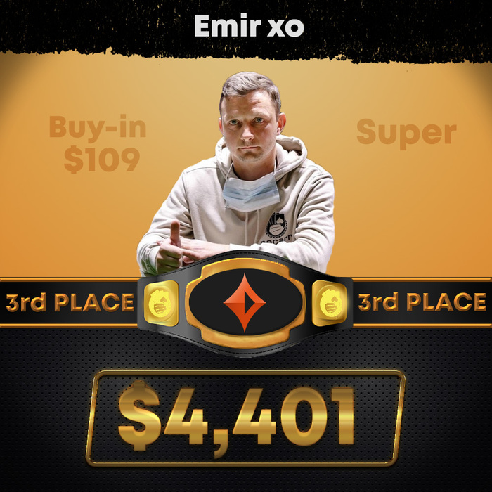 💬 Это новый турнир на Пати Super 109 PKO. Его недавно добавили, поэтому удалось сыграть его пока что только 4 раза. Причём первый раз случайно в него зарегался, и вылетел на бабле ФТ. А с четвёртого раза удалось выиграть.