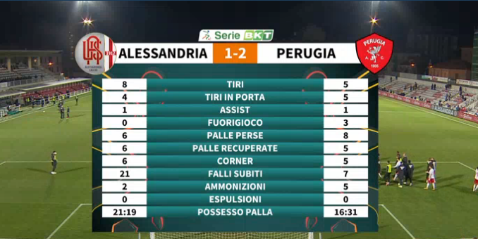 тем временем, Алессандрия проигрывает домашний матч Перудже.. при том что забивает первый гол в матче, ударом головой после штрафного..и уже в следующей атаке был выход 1 в 1 что бы делать 2:0..но нет.