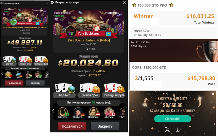 Мои крупные заносы за последний год. Остальные успехи моей игры можно глянуть в моем ТГ @kykyryrypoker, там я веду свой блог