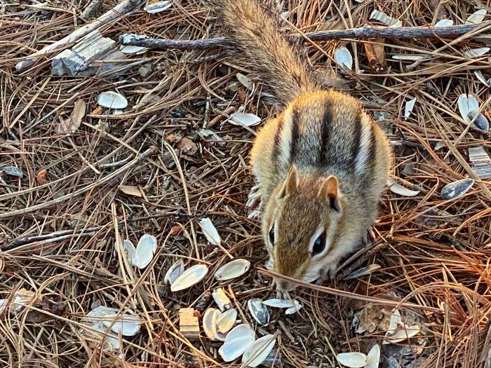 Совершенно не боится подбегать и отыскивать миснутые мной семки :3