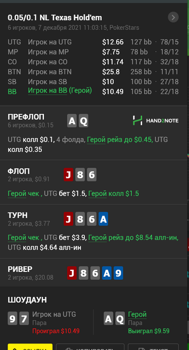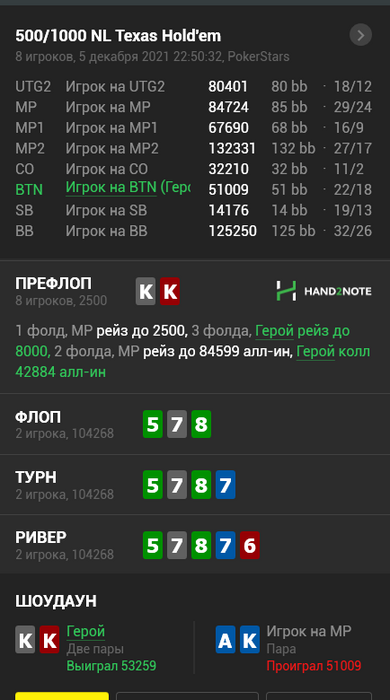 одна из решающих вчерашних раздач. колил без радости,но оказалось все не так плохо и КК устояли