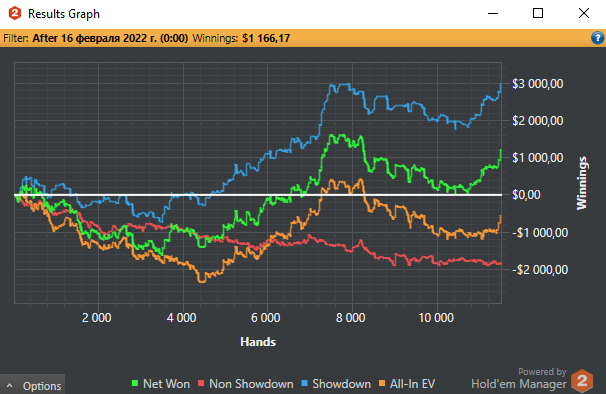 Завтра вроде у меня будет первая тренировка за бабки(до этого 3 бесплатных дал, и с каждой всё качественнее делал разборы), и получится чуть денежки заработать.(начал тренить, пока недорого, пишите, кому нужно, хотя кому сейчас до покера). Очень надеюсь что человеку понравится, я готовился очень долго, там еще и случай не самый легкий в плане оптимизации работы, так как алиас с 2 румов плюс разброс по лимитам и играм.