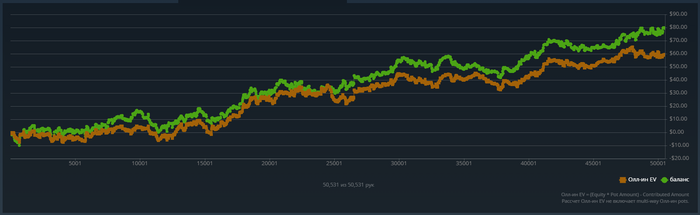 Ооо, шортдек. Когда мне повезло попасть в призы во флипауте после гринда в раше2, подзадумался, а как можно под ггкер попроще катать. Так и открыл для себя лудоманскую дисциплину 6+ (правда я катал в нее года полтора назад на ПСе уже). За эти 20к рук еще трижды попал в ггкер, но катка мне там не особо зашла. И дело даже не в рейке, дело чисто в том, что возникало ощущение, что я херней занимаюсь. Я уверен, в этой лудке за счет флипаута можно иметь завышенное ожидание на нл2, но оказалось не по мне сидеть и набивать эти стеки. Башка просто пухла, потому что целью было - именно набивать стеки, но никак не играть. Игрой здесь вышло -31$, что -8бб с рейком 17,22бб.