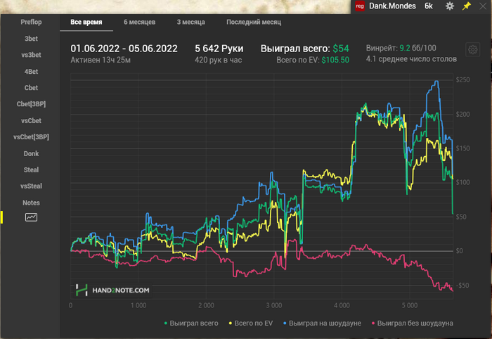 нет слов) за 110к рук 900 бачей недобора . Отыграл 4 часа 25 минут, скину позже график , (когда доиграю)