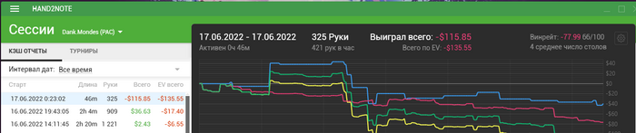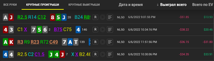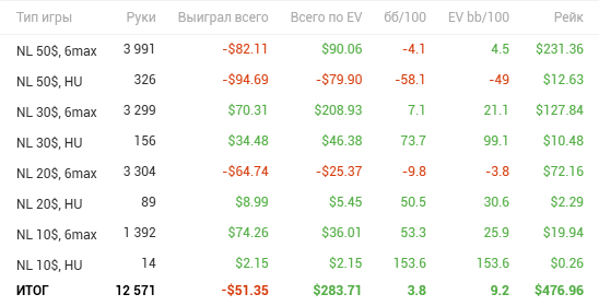 Хотя и про нл100 скажу, за те 100 рук я сыграл в 0, но по ев -450, поэтому справедливо