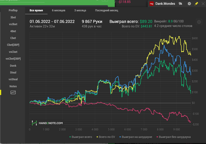 хз как это терпеть, переапнуло на нужном лимите кста на 5 дней перенесу марафон, вообще нетерпимо играть) ( минус больше на 15 долларов и по ев выигрыш больше, я психанул и закрыл стол, х2н не успел за моей молниеносностью ) .мб дождусь доп рб и депну , агрессивный бр очень на меня давит .