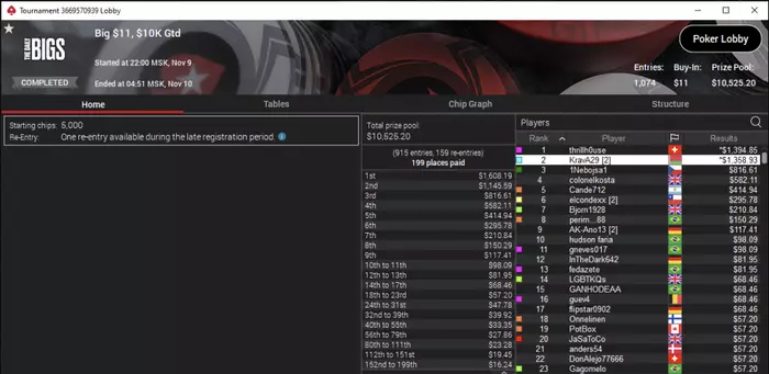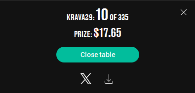Сама сессия вышла смазанная, начиналось все не плохо, отобрался с сатов в турниры подороже в шторм и прайм тайм на венике, но нигде не смог зацепиться даже за итм. Были дипы на пс.ес