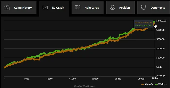 alchx, судя по всему разное кол-во рук обработано, т.к. бб/100 выше, а сумма меньше.