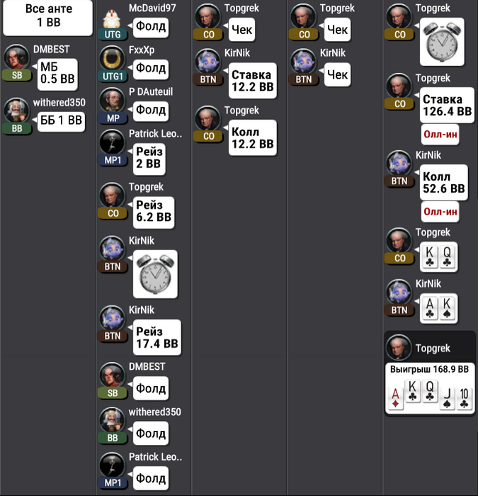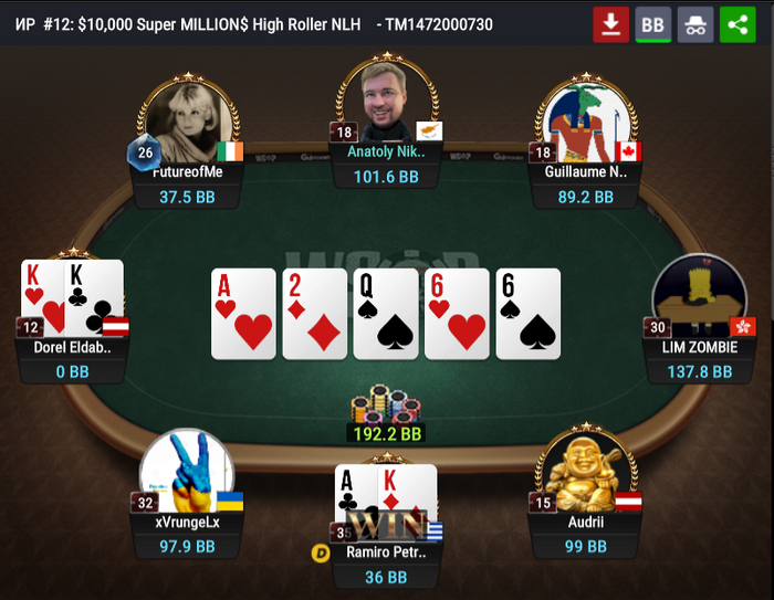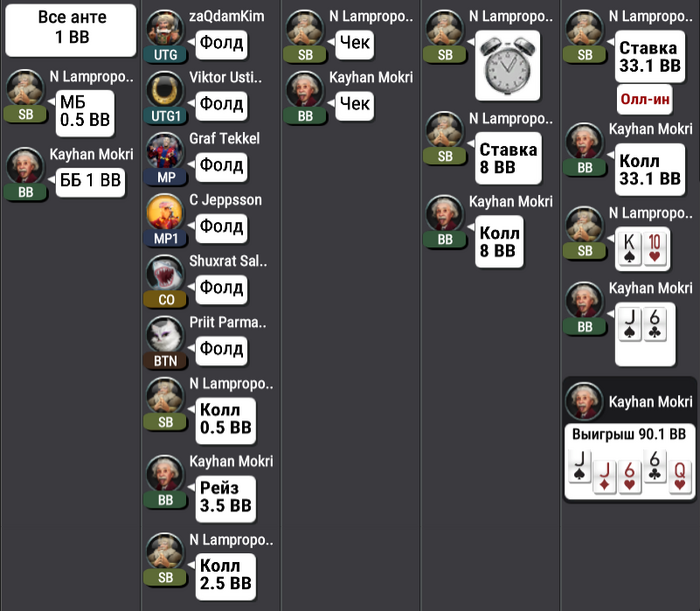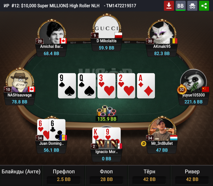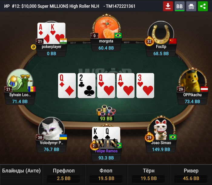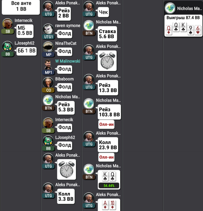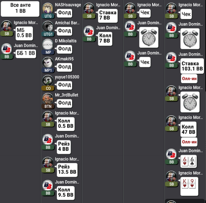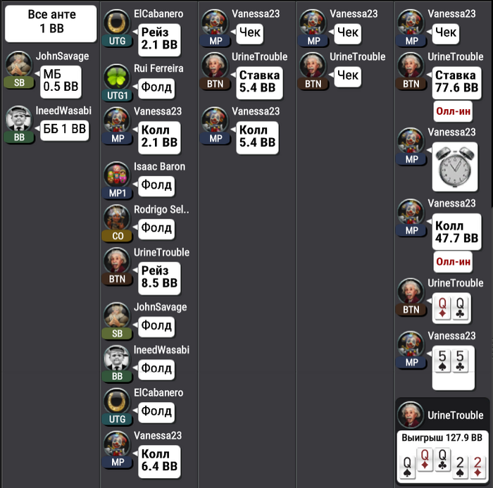 Тут выставились на префлопе. Рамиро заколлировал 5-бет олл-ин.