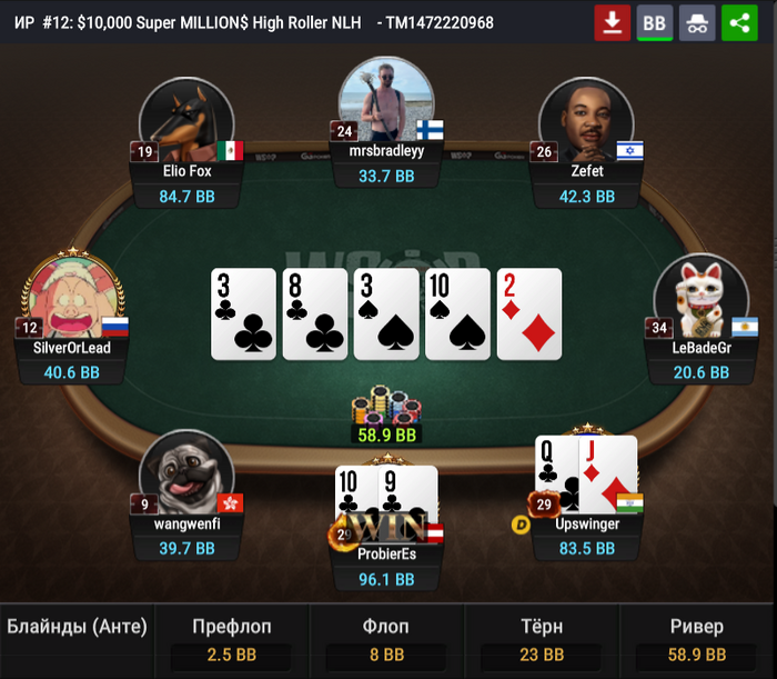 Юри Дзивилевски в своём 3-бет поте флопнул трипс, поставил три барреля, но соперник попал ещё лучше.