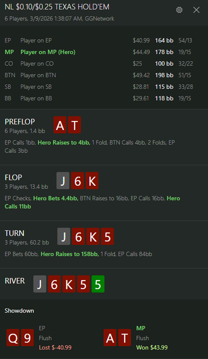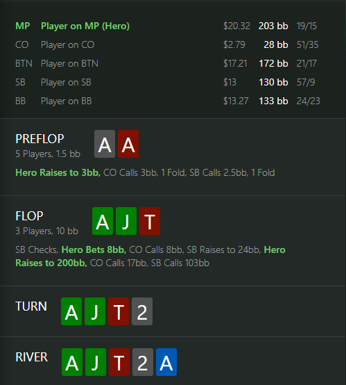 Тут получил инста донк пуш на ривере. Я даже карту увидеть не успел, а пуш прилетел. Как правило в таких пушах недоезды и тильт у випов, что они не доехали. Чел очень агрессивный был на пост флопе