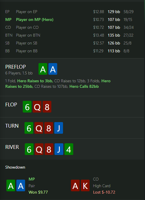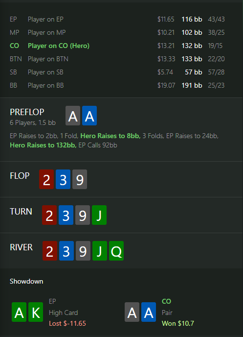 Одна из таких раздач. Зашел на нл25 под випа, дождался любимую руку