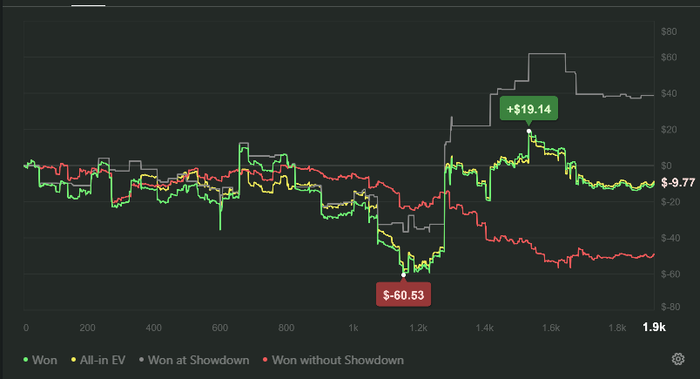 Был кулер и в мою сторону, который в целом помог вытащить сессию из минуса. На гг поляна вообще сладкая какая то последние 2 дня. Сидишь играешь в кайфовых составах. Был стол с тремя випаками и двумя полуфишами. Столы просто открываются одним за одним и ты в моменте сидишь и выбираешь на каком столе больше ожидание.