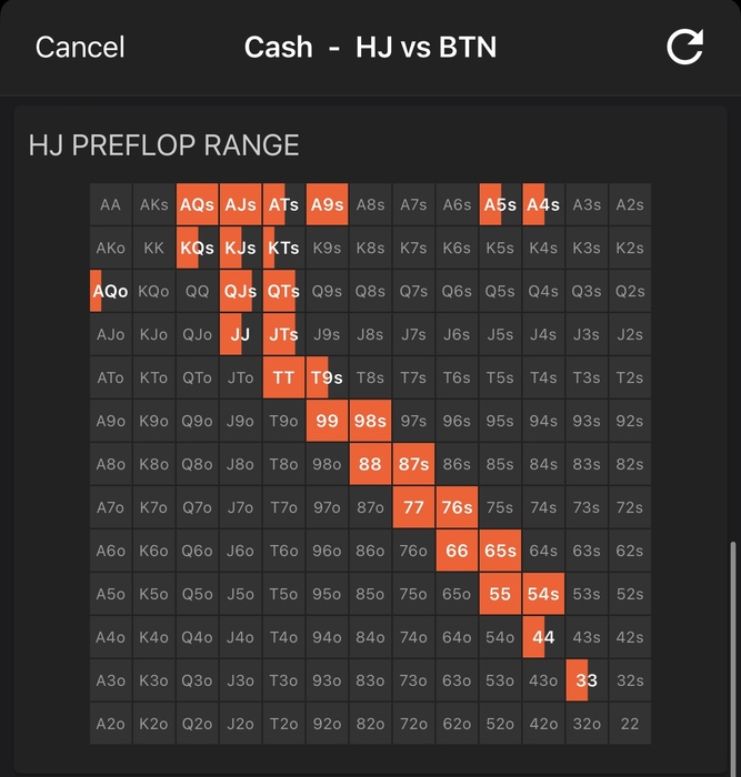 Но опять же, оппонент фиш, поэтому в рендже его колла на 3бет без позиции будет больше мусорных рук.