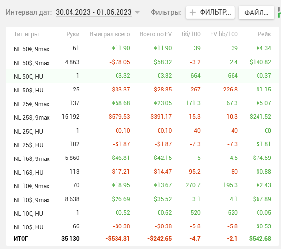 Вся веселуха по недобору это префлоп выставления, которые я мог проигрывать по несколько дней к ряду. За два месяца картина следущая - переезжаю всё, что можно и все кому не лень)