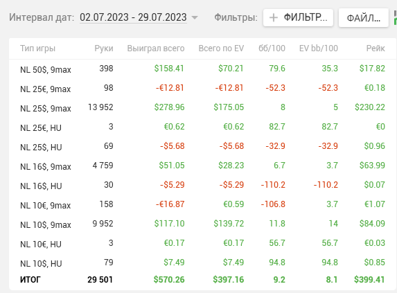 Даю себе обещание не переигрывать руки в июле, и чаще жмякать кнопку фолд)