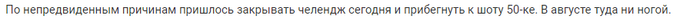 По непредвиденным причинам пришлось закрывать челендж сегодня и прибегнуть к шоту 50-ке. В августе туда ни ногой.