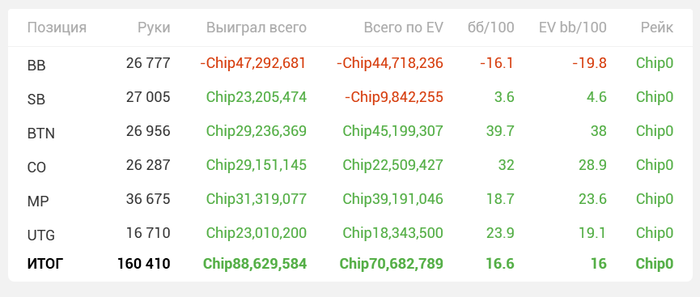 Ласт месяц по винрейтам. На SB, по сути, дефолтный винрейт. Даже стал лучше. Нужно на BB немного концентрации и будет вообще топчик.