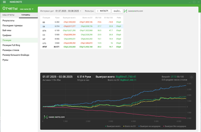 Лучший месяц по катке за год😎. В плане дистанции и Ev. Сыграно 700+ турниров с внушительными 20 Ev bb.