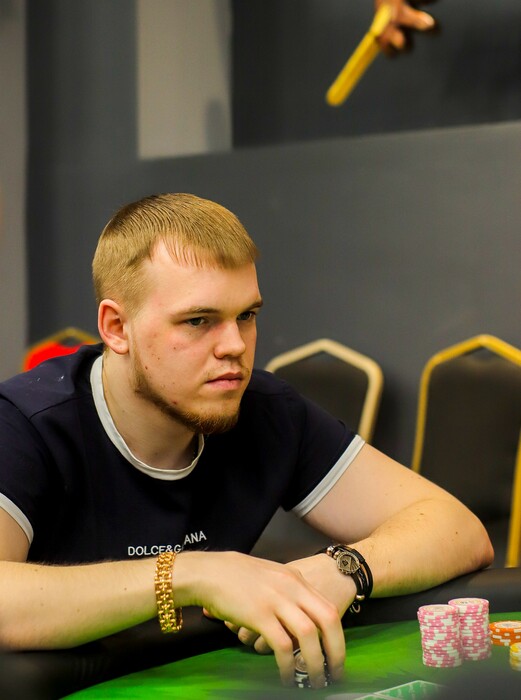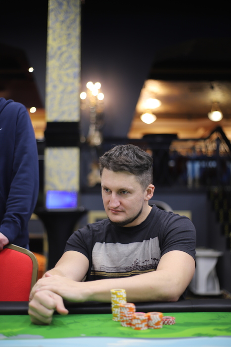В тройном префлоп олл-ине Соловьев Дмитрием с утюга, Кростилев Максим с малого, и Колотюк Роман, который покрывал обоих по стэку, с большого.