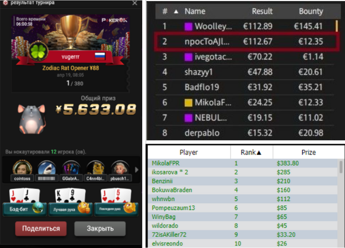 💥@MikolaFPR (Николай) становится вторым в турнире 500💲 GTD и зарабатывает 93💲