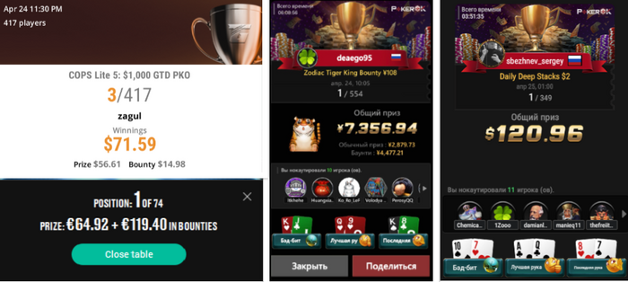 nick_nick в турнире COPS Lite 5: 1,000💲 GTD PKO за 14,98💲 занимает 3-е место и выигрывает приз в размере 71💲