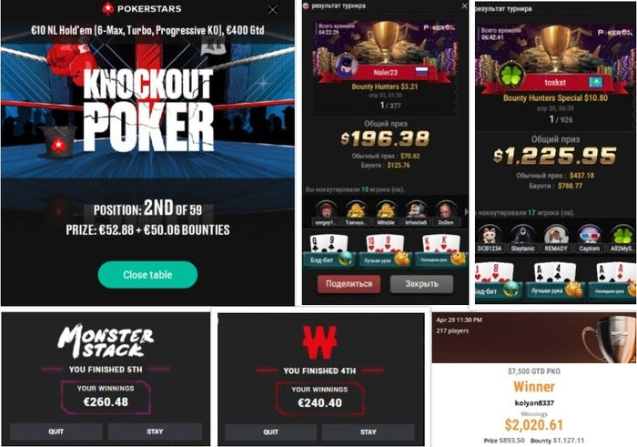 💥happyweeke на старсах в турнире 10€ Holdem Progressive KO занимает 2-е место получая утешительный приз в размере 102€