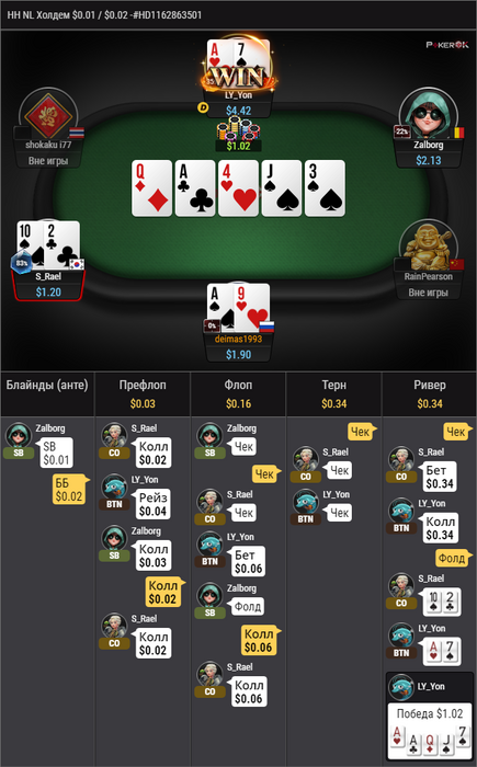 А я уже не верил.... Но ничего! Мы сыграли потом еще несколько раздач, где ему еже так не фартиро и он блефовал с пустотой.
