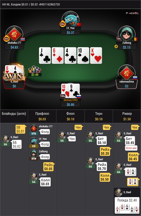 Оппоненты видимо думали, что у меня ничего нет и если ставили, то маленькую в размере 30-50% банка. Ну.. Вроде по вероятности было колить такую ставку.