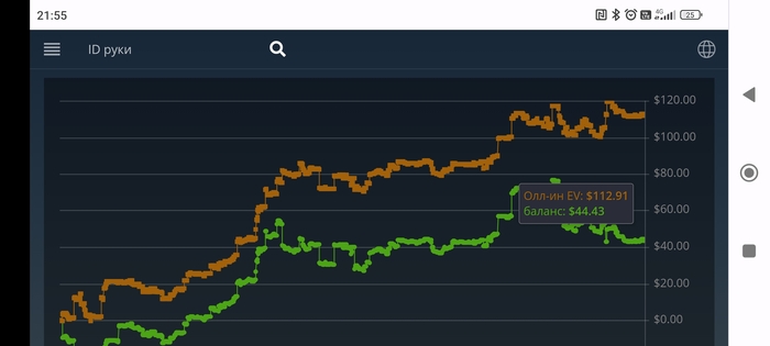 А у меня оба вниз идут( если бы ев вверх шла, я бы не особо переживал. А так нужно что то менять, а что не понимаю. Может для данного лимита играю нормально. Но что не вскрытие то снизу. Угнетает.