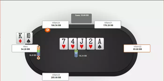 в чек я решил что опп сдается, помимо недоезда флаш дро и комбаря что он решил не доблефовывать, очень хорошо что у него есть допер на J7s 3 комбы, так как теперь это тыква против нашего трипса и овер пар, бетаем 75, получаем пасс. Снова выйграли, хочу сделать упор на свои мысли в раздаче в первую очередь, а не на результат, главное - навыки и дистанция. ЧАО