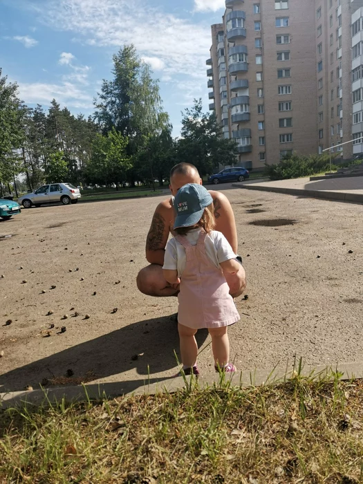 сначала с женой поиграли с дочей на улице, потом папа пошел в свой покер