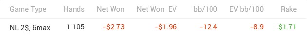 Рук отыграл мало, так как пытаюсь хорошо селектить и сажусь только за хорошие столы.