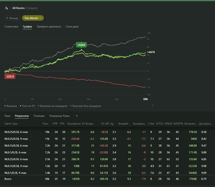 У меня давно просадка винрейта в 9макс игре. Это как-то нелогично что ли. Типа игра в узких ренжах вс нитов сложнее противоположной? Бред. И моё внимание обращали на это. Но изменений не последовало. В общем в декабре я уделил этому время и был очень удивлён какого масштаба была ошибка.