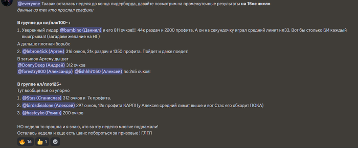 Организаторы лидерборда большие молодцы, думаю это рил помогает поднять мотивацию у определённых людей. Лично я собирался выкатать 50к в этом месяце и до лидерборда. А так ещё и приятный бонус и компетитив дух. Ну а моё скатывание буду расценивать как ценный опыт.