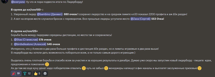 В декабре я участвовал в лидерборде, в котором намеревался стать первым. Лидерборд был 21.11-31.12.