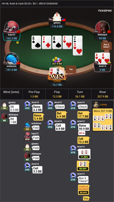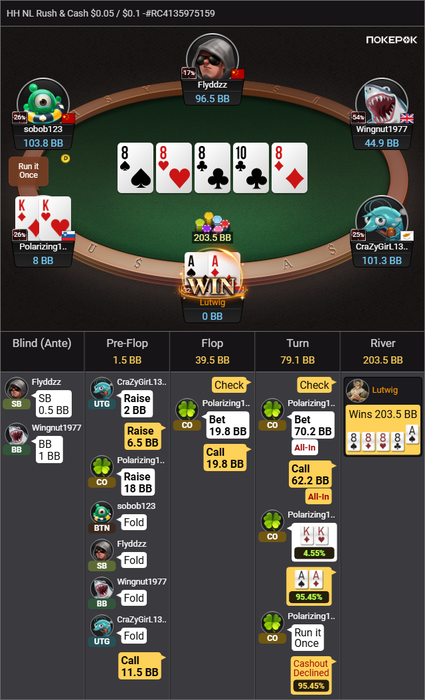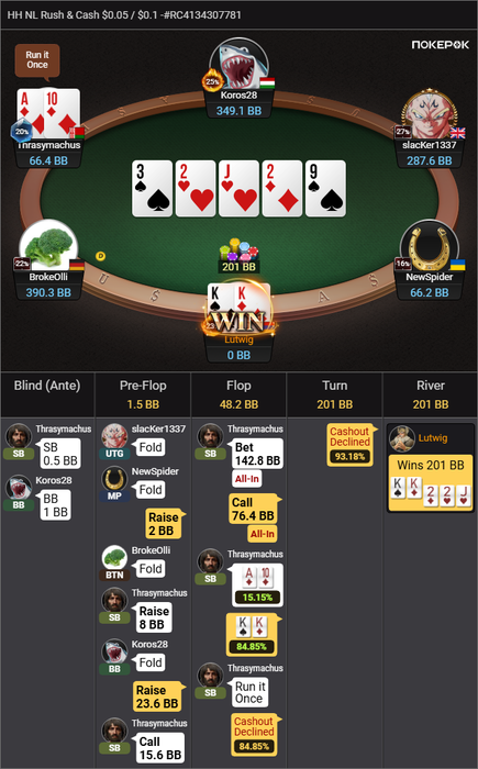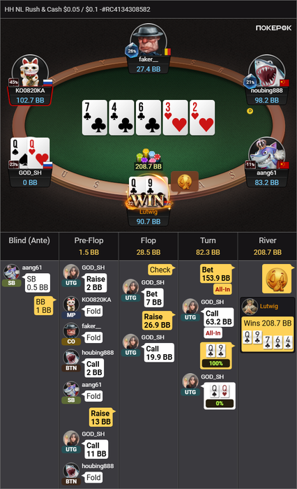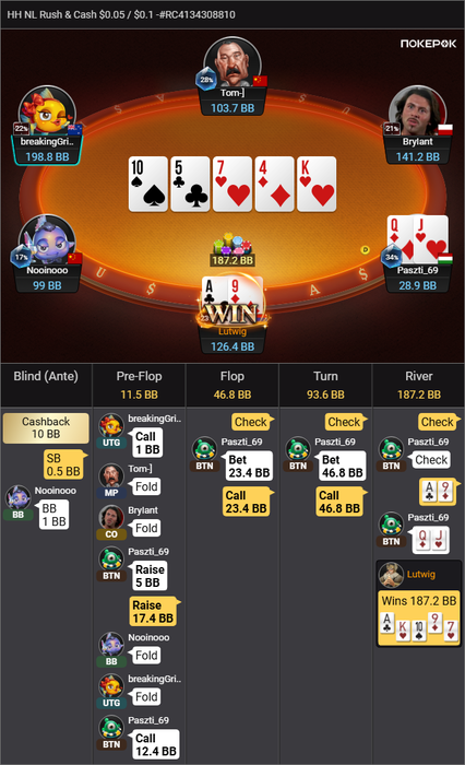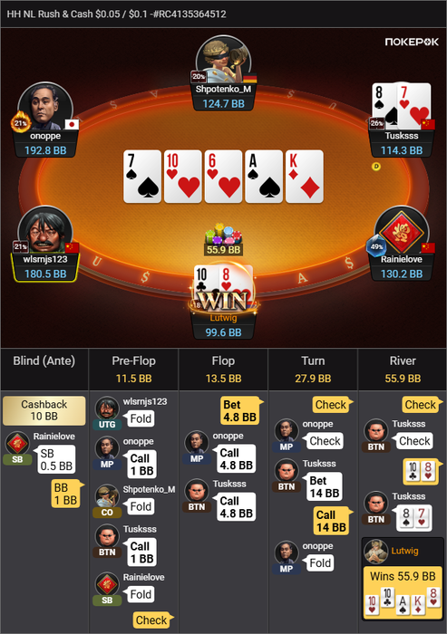 Заметил, что многие оппоненты, даже реги, стали заметно выходить за рамки стандартных рейнджей (особенно 4бет с 22 мне понравился в ранних позах от нитушного рега). Динамика изменилась в агрессивную сторону - это прям заметно, относительно того что происходило пару лет назад на этом лимите в раше.
