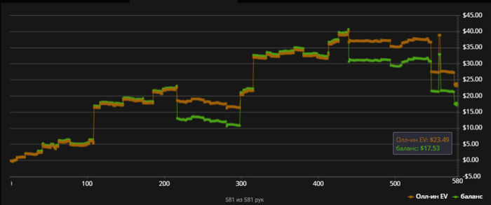 Вкат в рабочий режим получился жестким. Попал под череду кулеров. С точки зрения техники игрой доволен: без грубых ошибок, как мне кажется, и тильта.