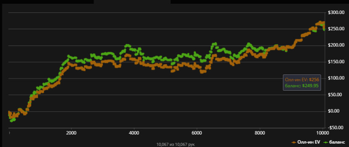 План: Агрессивный BRM. Я поднимаюсь с NL10 до NL200. Подстраховка: ниже NL10 не опускаюсь, нл25 тоже сохранение.