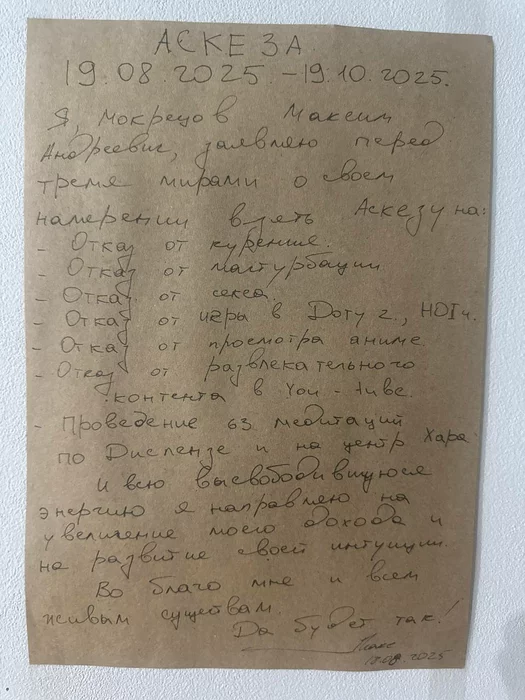 Довольно забавно совпало, что сегодня через пару часов завершается срок держания аскезы, осталось только 1 раз помедитировать, после поста сразу займусь этим.