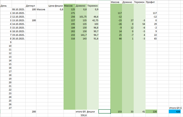 Вчера не верно посчитал цену фишки. Вчера было сыгранно в ноль.