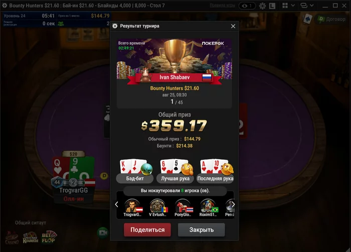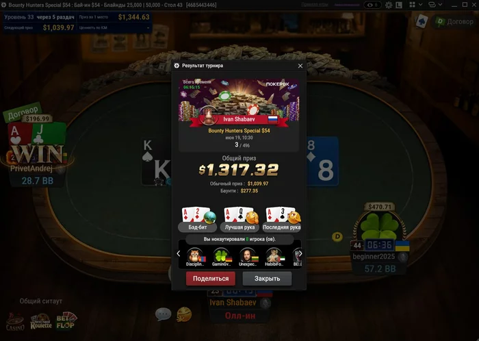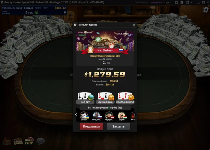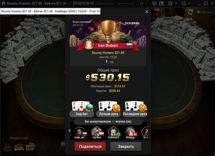Прикинул что при фиксе в 35% РБ на аби 30 - 600 турниров в месяц, выходит зарплата сотрудника МЧС, ну разве не круто? Да это потрясно, да ещё к тому-же и другие румы есть.