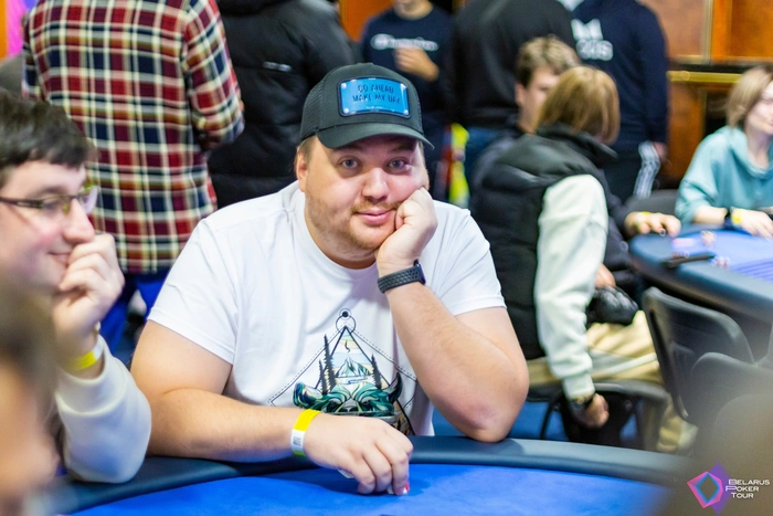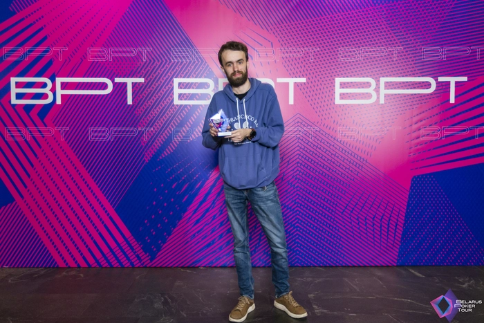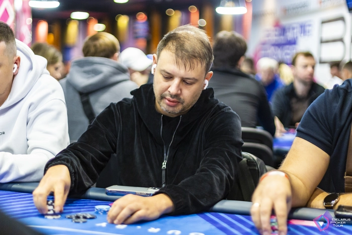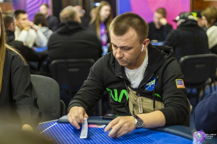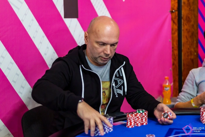 Денис Щуревич вылетел из турнира и отдал свои фишки в бокс Вадиму Бондарю. Оба с флопа попали в сет, но Бондарь был старше. После этой раздачи стек Вадима стал около 190к.