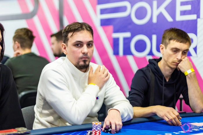 Правда уже через несколько минут пришел на стойку регистрации за ре-ентри. Вернулся Александр за тот же стол и у него есть шанс отомстить. 😈