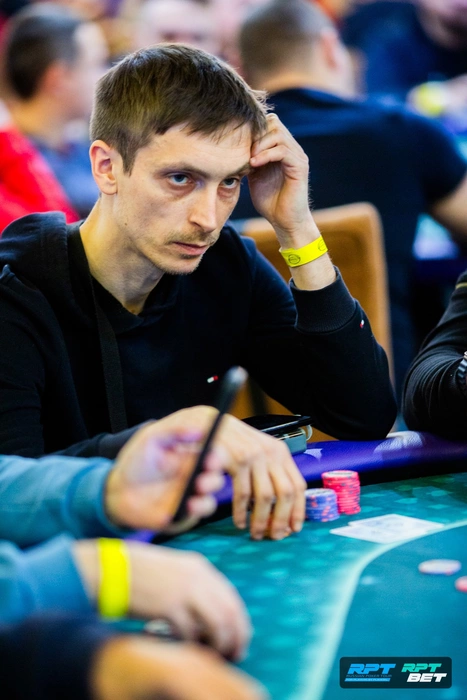 Сергей Романенко продолжает держаться в топе чипкаунта. Пару минут назад освободил из турнира Евгения Шикунова.