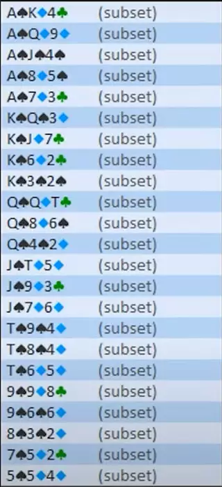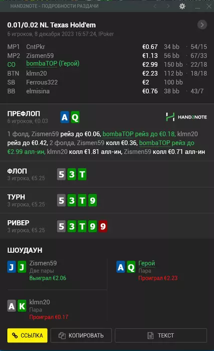 в) бродвейные связанные - KQ8, QJ4, JT2. разномастные типа К95 разыгрываем в треть пота всем ренджем. у нас перевес по ЕВ и сильным рукам, оппонент попадает хорошо, чек-рейзит средне часто. конт-бетим 50% рук, сайзом 66-75%. собираем велью с попаданий оппонента.